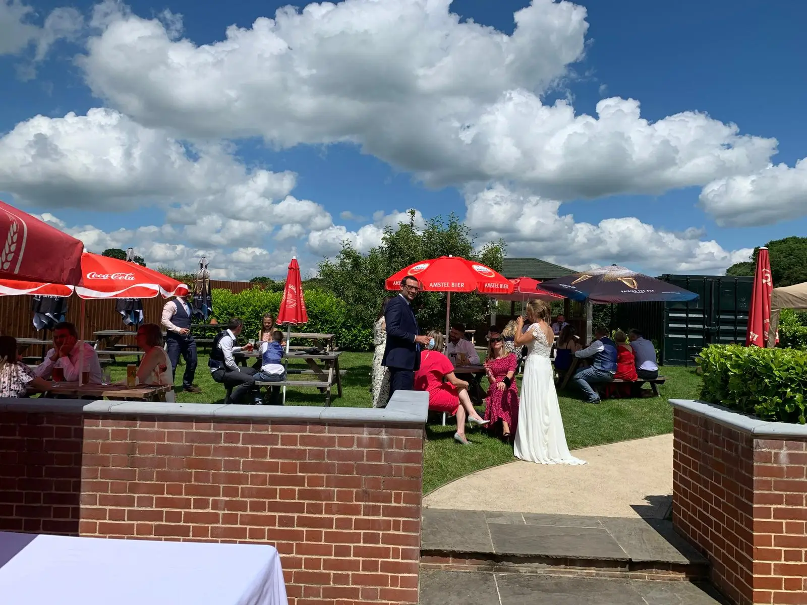 Two large beer gardens with outdoor seating